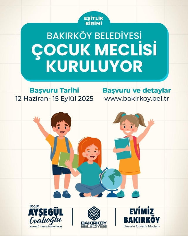 Bu meclis sayesinde çocuklar; dil, din, kültür, düşünce ve sosyoekonomik fark gözetilmeksizin kent sorunları hakkında fikir beyan edecek, çözüm önerileri geliştirecek ve çevresel, toplumsal konularda sorumluluk üstlenecek. Başvurular 15 Eylül 2025 tarihine kadar www.bakirkoy.bel.tr adresi üzerinden yapılabilecek.