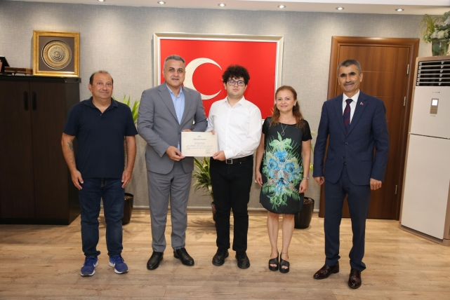 Samimi atmosferde geçen ziyarete İlçe Milli Eğitim Müdürü Emin Çıkrıkçı da katılarak öğrencinin başarısını yerinde tebrik etti.