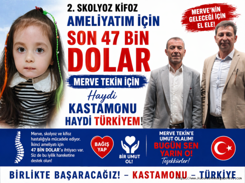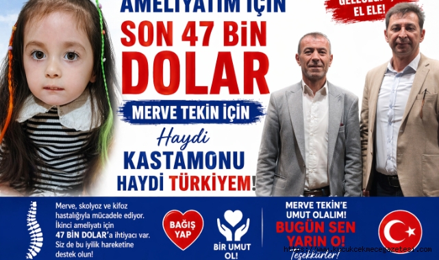 İkinci ameliyat için gerekli olan 47 bin dolarlık meblağın toplanması adına başta Kastamonulu hemşerileri olmak üzere Küçükçekmece halkına, mülki amirlere, sivil toplum kuruluşlarına (STK) ve hayırseverlere seslenen Özdemir, Merve’nin hikâyesinde rol alan herkesin bu son düzlükte desteğini esirgememesi gerektiğini vurguladı.