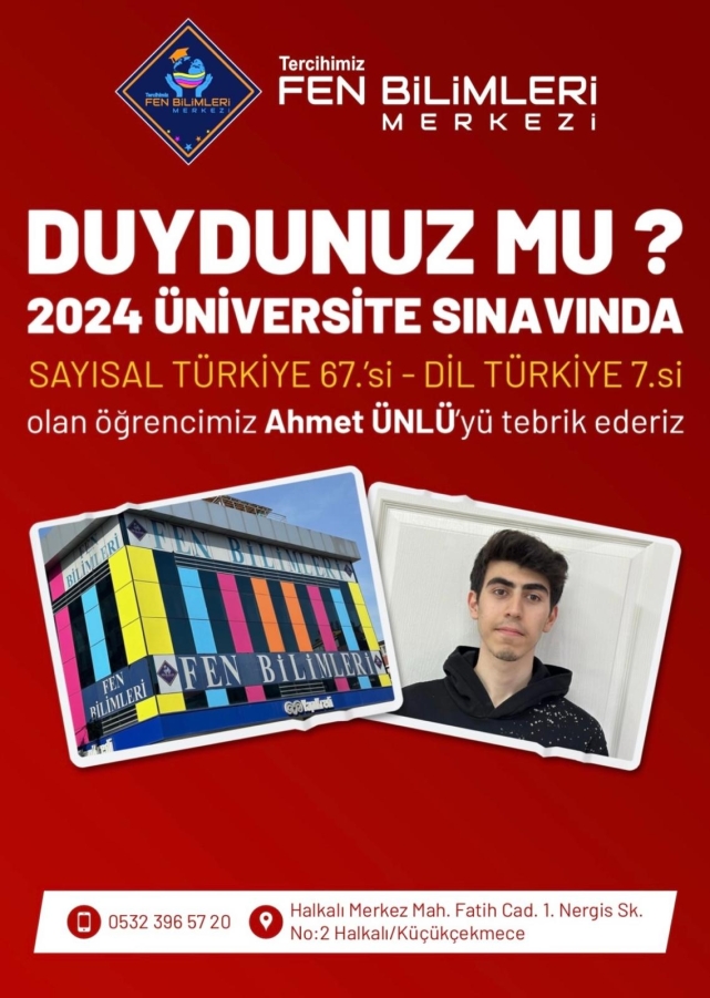 2024 YKS (Yükseköğretim Kurumları Sınavı) sonuçlarında ise Ahmet Ünlü;