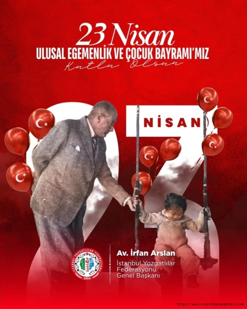 İstanbul’daki Yozgatlıları bir çatı altında toplayan İstanbul Yozgatlılar Federasyonu, 23 Nisan Ulusal Egemenlik ve Çocuk Bayramı’nı coşkuyla selamladı. Genel Başkan Avukat İrfan Arslan, günün anlam ve önemine binaen anlamlı bir kutlama mesajı yayımladı.