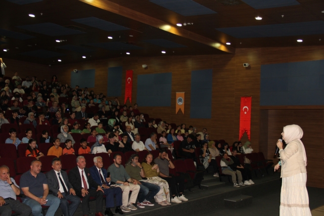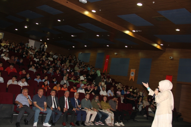 Ata Konferans Salonu’ndaki Program, saygı duruşu ve ardından okunan İstiklal Marşı ile başladı. Kur’an-ı Kerim tilavetiyle manevi bir atmosferin oluşturulduğu etkinlikte, İlçe Millî Eğitim Şube Müdürü Selamettin Tunç anlamlı bir konuşma gerçekleştirdi. Konuşmasında, etkinliğin amacına ve önemine değinen Tunç, şu ifadeleri kullandı: “Bakanlığımıza bağlı eğitim kurumlarında öğrencilerimizin dinî, manevi, ahlaki ve insani gelişimlerine katkıda bulunmak; İslam’ın temel ibadetlerinden olan namazı, Kur’an ve sünnet temelinde, günlük hayata bakan yönleriyle bütüncül bir bakış açısıyla anlatmak ve onun önemini kavratmak; ibadetler aracılığıyla sevgi, saygı, irade, özdenetim, sorumluluk, dostluk, yardımlaşma, birlik ve beraberlik gibi değerleri tecrübe etmesini sağlamak amacıyla hazırlanan ‘Vakti Kuşanmak, Kalbe Dokunmak’ yıl sonu etkinliğimiz çok güzel bir program oldu.”