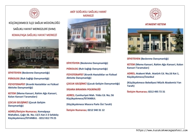 Küçükçekmece halkı, aşağıdaki merkezlerden randevu alarak tüm bu hizmetlerden faydalanabilir:
