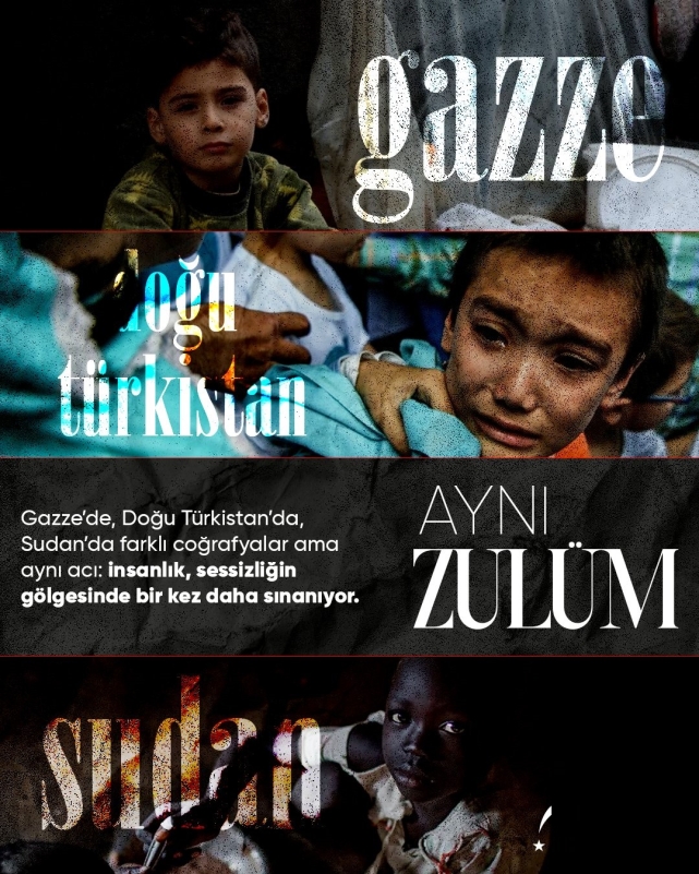 Bugün insanlık; Gazze’nin karanlık sokaklarında, Sudan’ın çatışma bölgelerinde, Doğu Türkistan’ın beton duvarlı zindanlarında sınanıyor.