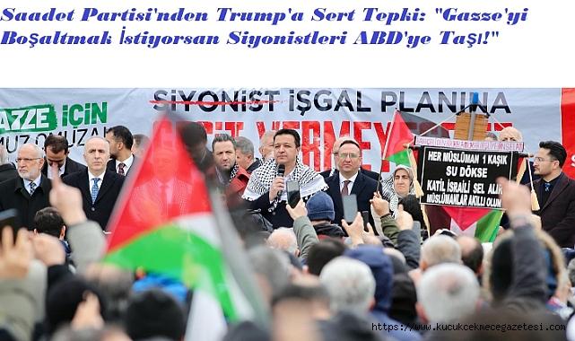 Saadet Partisi, ABD Başkanı Donald Trump’ın Gazze’yi boşaltma ve tehdit içerikli açıklamalarına tepki göstermek Beyazıt Meydanı’nda bir basın açıklaması yaptı. Saadet Partisi Genel Başkanı Mahmut Arıkan, Trump’a seslenerek, ''Madem Siyonist İsraillileri bu kadar çok seviyorsun, onları Arizona eyaletine yerleştir. ABD’deki Siyonist Lobiyle İsrail Siyonistlerinin hasretine son ver. Çöl iklimi ile Orta Doğu’yu aratmaz, hiç yabancılık çekmezler. Yok illa Gazze gibi deniz manzaralı olsun dersen hepsini Teksas’a taşı. İsrailli dostları için orada güzel şehirler inşa edebilirler” dedi.