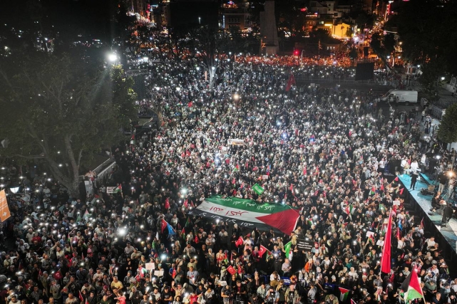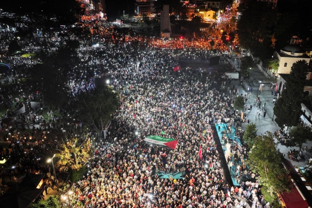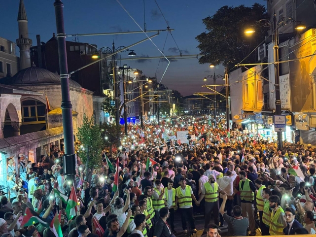15 sivil toplum kuruluşunun bir araya gelerek oluşturduğu Filistin’e Destek Platformu tarafından “Gazze’ye Umut Işığı Ol!” sloganıyla yürüyüş eylemi gerçekleştirildi. Yüz binlerce kişinin fenerlerle yaptığı yürüyüş, Beyazıt’tan başlayarak Ayasofya-i Kebir Camiî Şerifi önünde sona erdi.İsrail’in Gazze’ye yönelik katliamlarını ve soykırımını protesto etmek amacıyla akşam namazının ardından Beyazıt Camiî önünden Ayasofya-i Kebir Camiî Şerifi önüne kadar yüz binlerce kişinin katılımıyla yürüyüş düzenlendi.